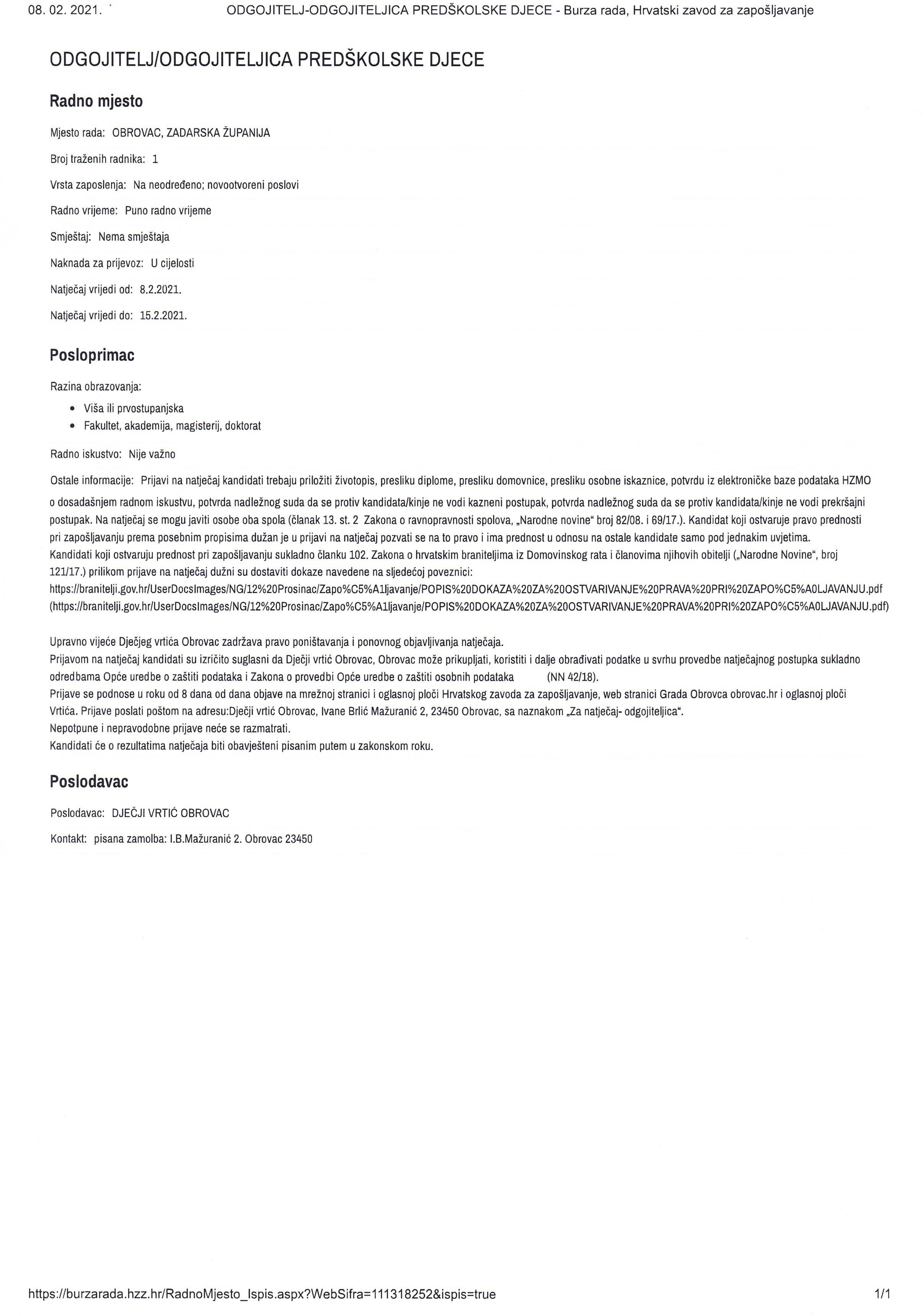 Adresa: Ivane Brlić Mažuranić 4, 23450 Obrovac